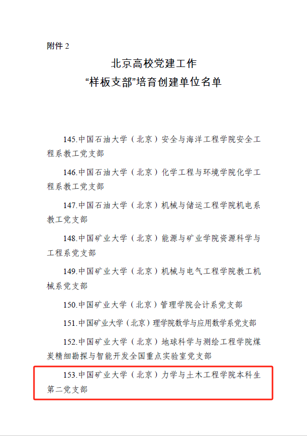 乐天使官网党委申报的单位和项目全部获评,2024年党建工作取得新的突破和重要进展。“力学与土木工程学院党委”入选北京高校党建工作“标杆院系”,“力学与土木工程学院本科生第二党支部”入选北京高校党建工作“样板支部”,力学与土木工程学院党委联合能源与矿业学院党委负责申报的《“一融双高”推动科技创新发展,党建引领服务国家重大战略——以先进采矿产学研用新平台、川藏铁路重大项目为例》入选“党建引领实践创新示范项目”。